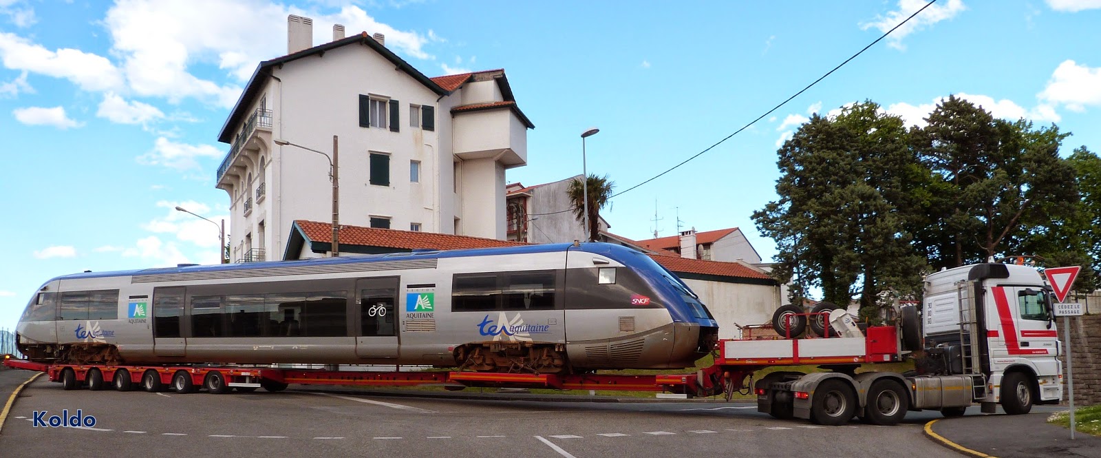 Hendaya sigue siendo punto de puesta en vía de material de exportación, como la composicion nº 21, Nera de Metrorex, Metro de Bucarest, material fabricado por CAF.